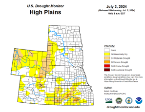Precipitation amounts varied this week, ranging from 2% in southwestern Wyoming, southeastern Kansas, southeastern South Dakota, and southcentral and northeastern Colorado to 800% in small spots of southwestern and eastern Colorado and northern Wyoming. Columbia, South Dakota received 7.12 inches in precipitation, well above their normal of 0.13 inches; most of this fell on the 1st. Drought continues in the region. D0 (abnormally dry) across the region was down from 43% to 40%. In the region, Colorado experienced the highest decrease in D0 conditions by 15% while Wyoming experienced the highest increase in D0 conditions with a 4% increase.